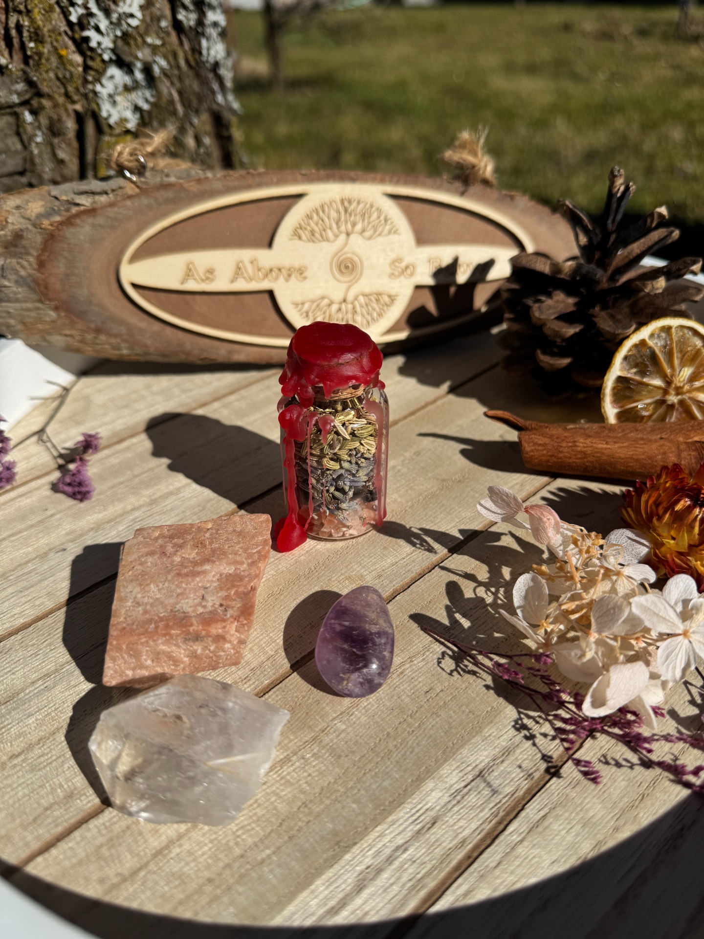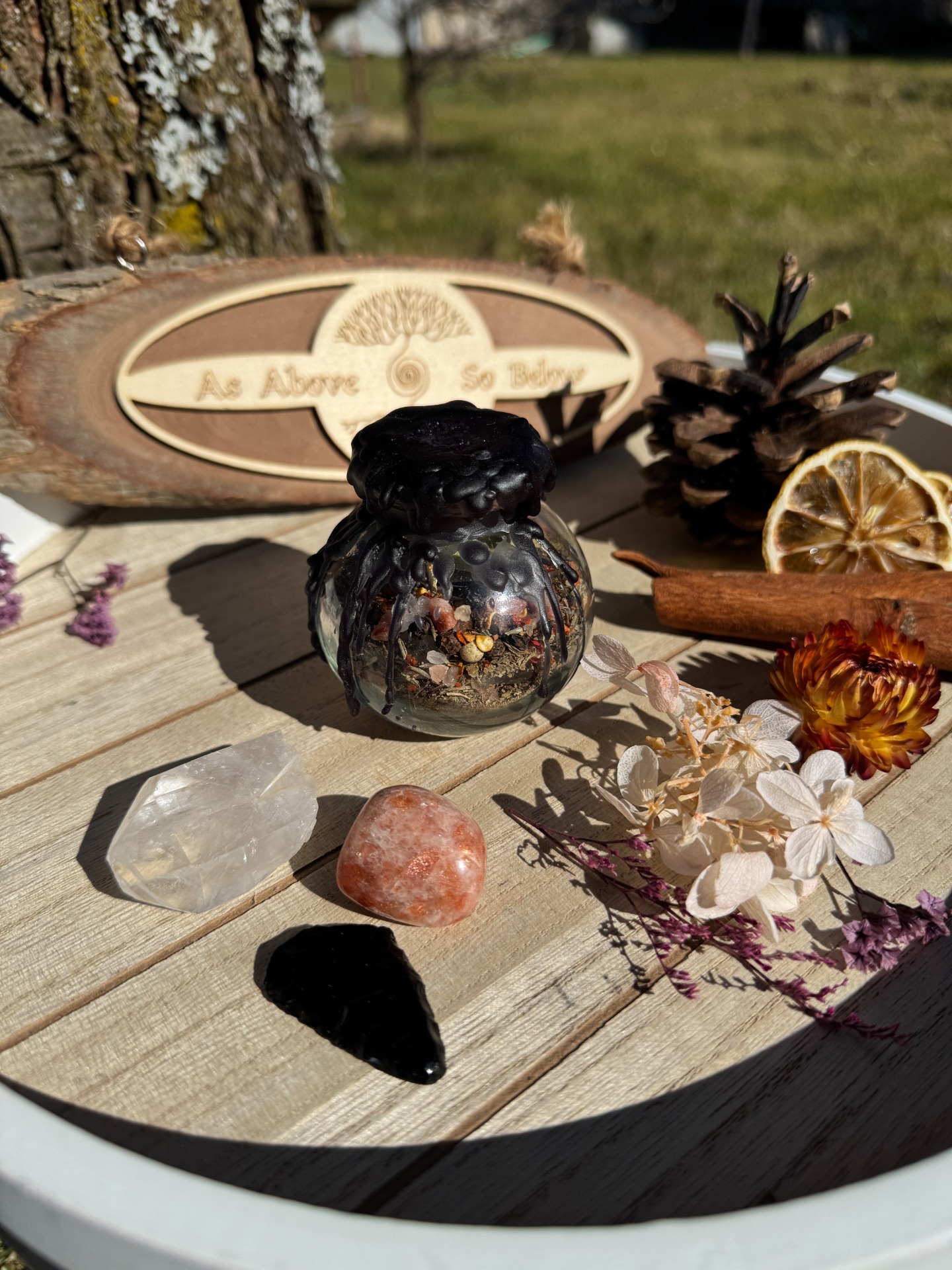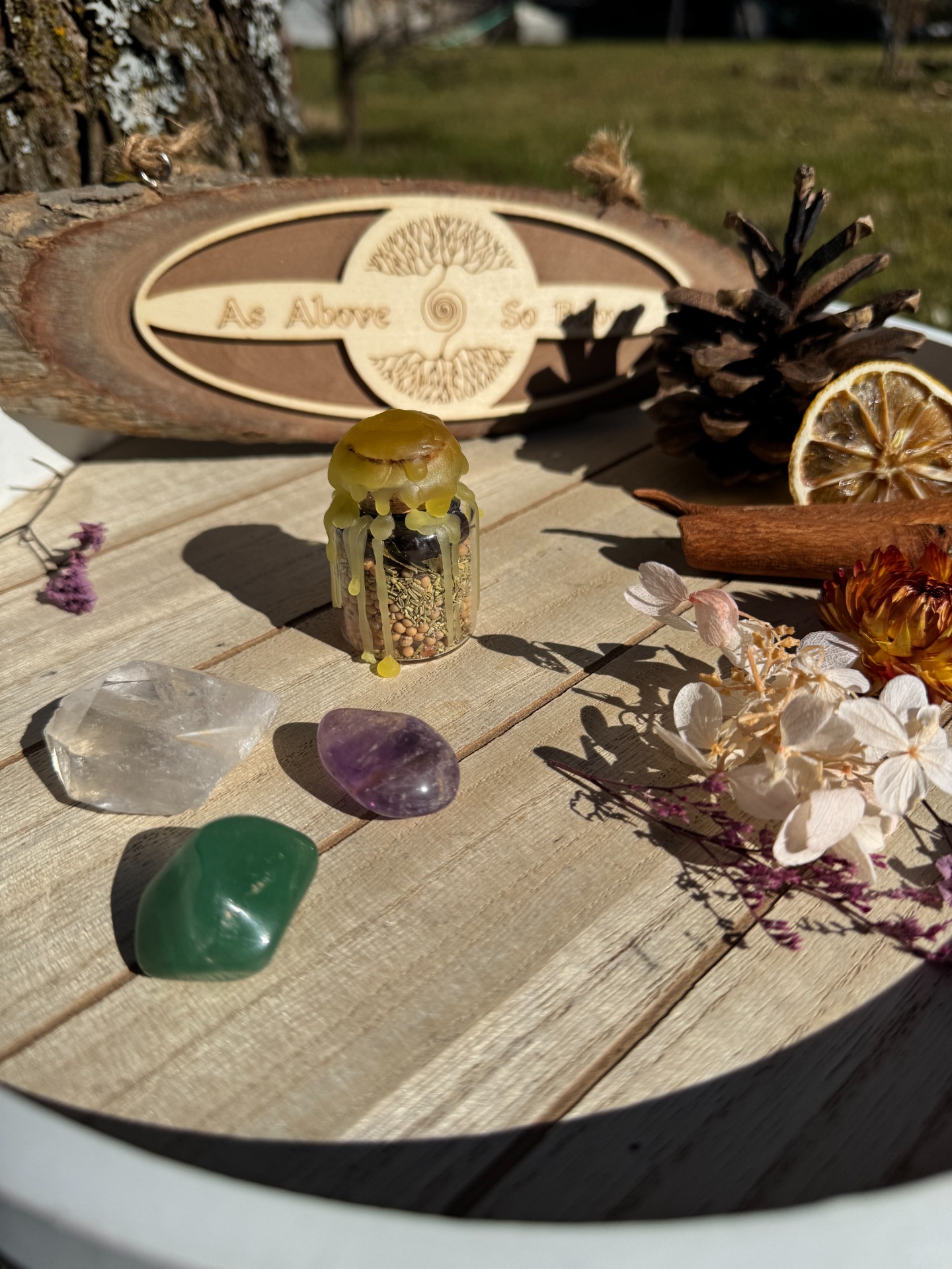 Spell jar o objemu 15 ml je vaší osobní mocnou energetickou pomůckou, stejně jako její větší 20ml a 60l objemové kamarádky. Můžete ji mít stále při sobě. Ať už ji nosíte v kapsy, kabelce nebo batohu, tento malý kouzelný pomocník je vždy připravený podpořit vás na vaší cestě. Tento spell jar je navržen pro každodenní ochranu, posílení sebelásky...