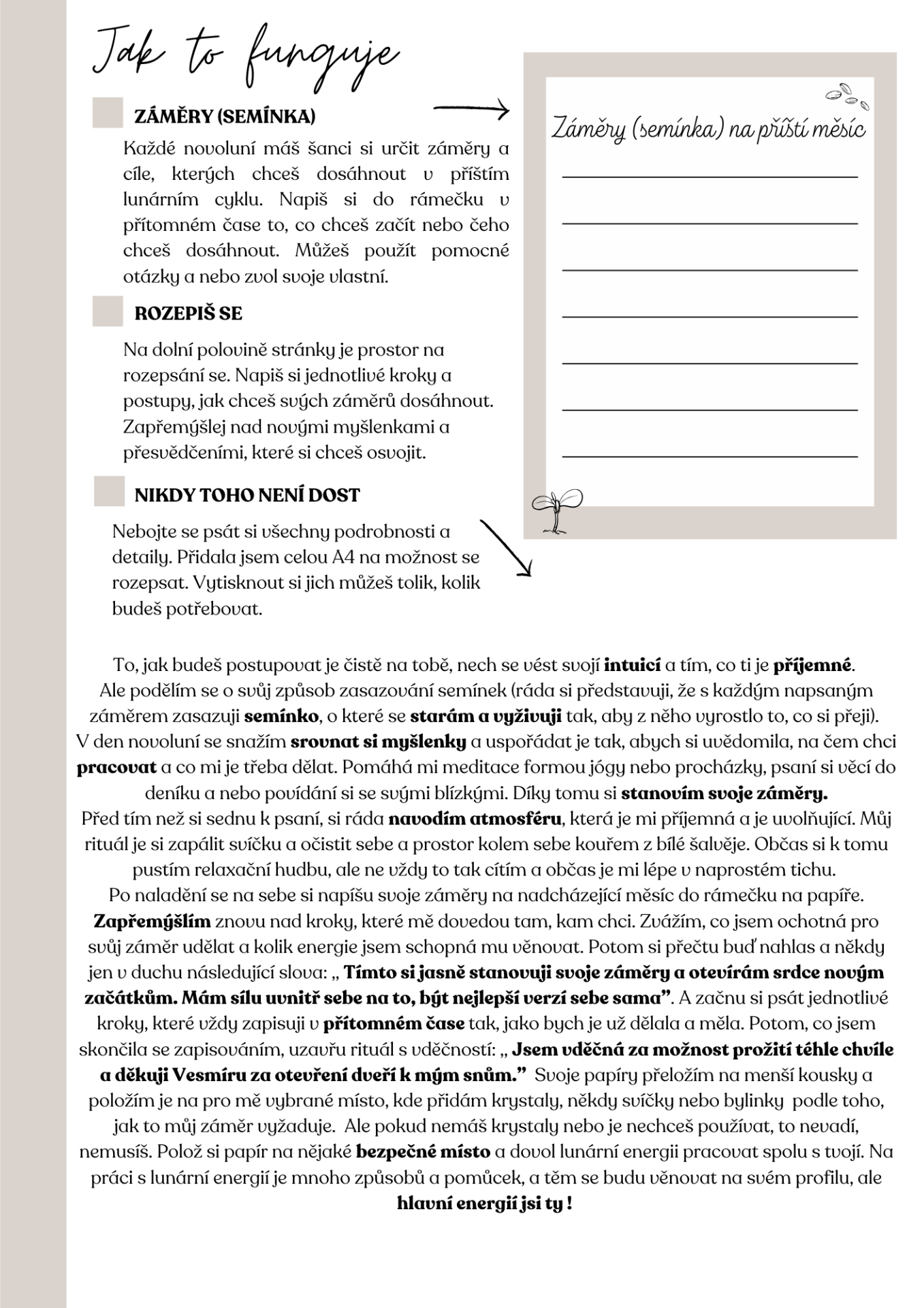 Novolunní rituál Při novoluní je čas sebereflexe a introspekce. Tak jako je Měsíc ve stínu Země, jedna z oblastí našeho života potřebuje prozkoumat její stín.